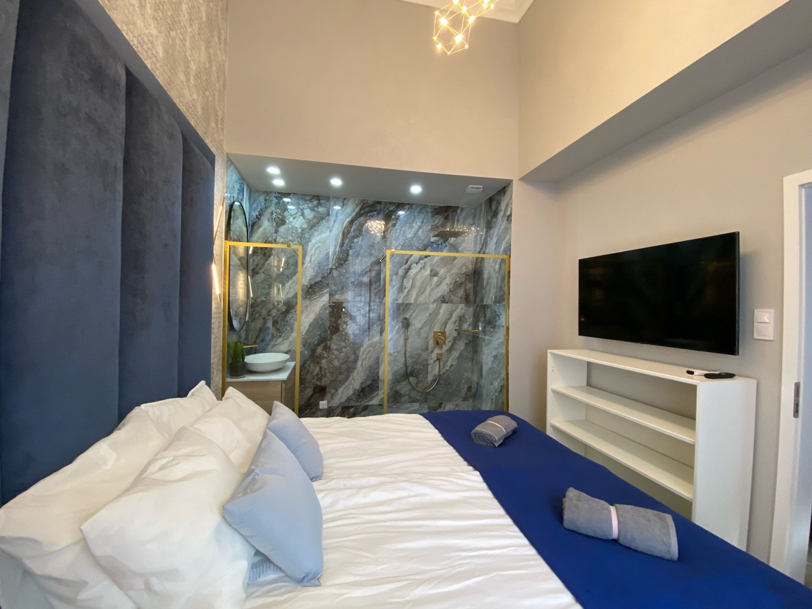 - Bed Type: 3 queen bed